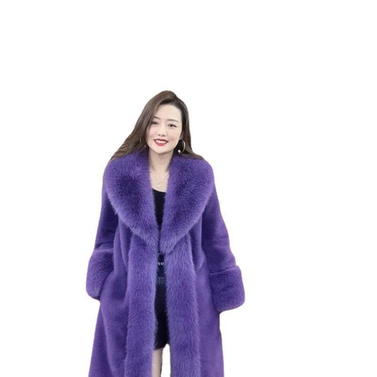 2024 new imitation mink fur coat for women imitation fox fur collar European mink velvet mid-length Haining fur