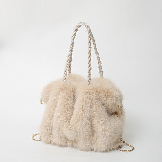 Plush bag for women with large capacity 2024 autumn and winter wear crossbody bag hand-held plush bag pumpkin bag cloud bag