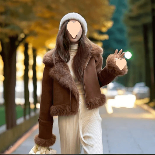 Maillard retro dark green one-piece motorcycle jacket for women winter design versatile fur warm jacket
